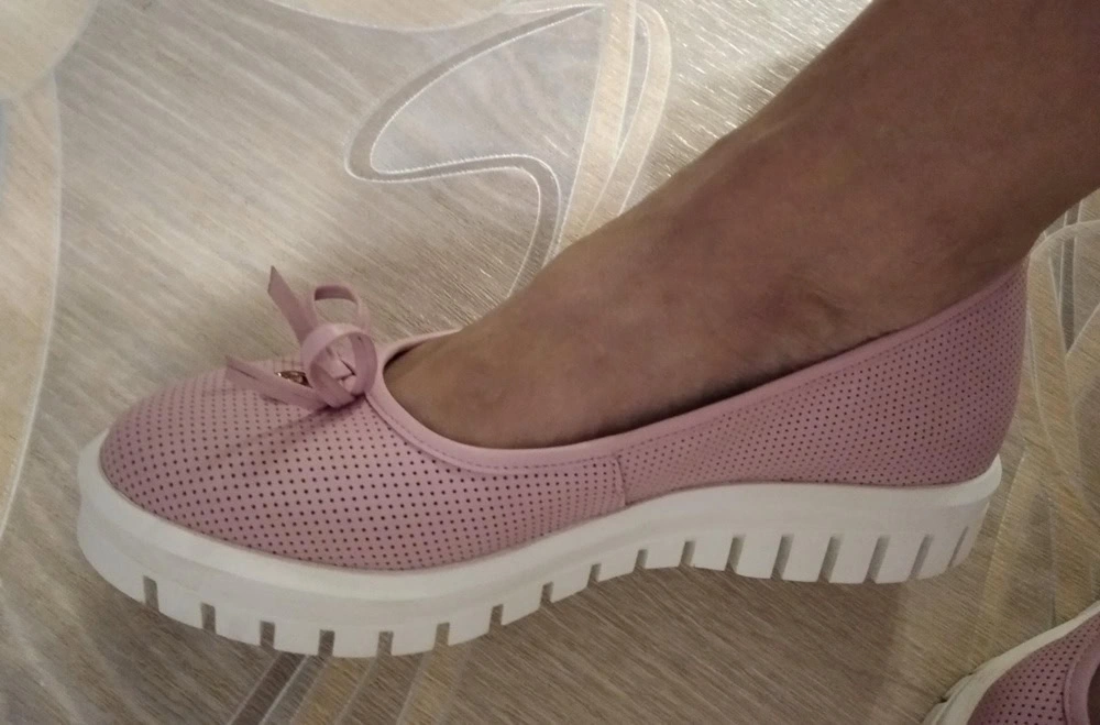 Мои любимые. До них у меня были такие же белые только 40 размера, всю обувь ношу этой фирмы 40 размера, и эти белые покупала, они, конечно были туго, но разносила. Розовые взяла 41, гораздо комфортнее. Т.е. считаю что маломерят по сравнению с размерами же этой фирмы на 1 размер.