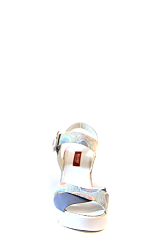 Лёгкие и удобные пастельные босоножки на НЕширокую ногу; многоцветная часть выполнена из мягкой кожи под змею с небольшим блеском, однотонные ремешки исполнены матовой кожей. Пряжка из металла оловянно-серебристого оттенка. На русский 38,5 по следу 39 в самый раз. НО, повторюсь - пара на УЗКУЮ ступню; в противном случае передние ремешки пережимают ногу и заметно давят. Поэтому, увы, возврат :-(
