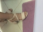 Внешне босоножки премилые. На узкую ногу, что радует. Сидят супер. Но все-таки решила отказаться. Во-первых, велюр за такую цену стало жалко покупать, за ним сложно ухаживать. Каблук тоже велюровый, один дождь и все... на ногах не не туфли, а хрюшки. Во-вторых, надевая надо всегда руками расправлять эти ремешки. Для нервного человека это будет большим минусом.