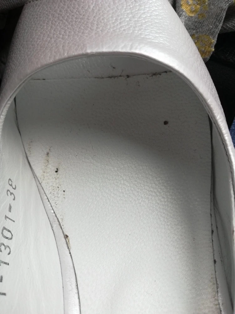 Ну пишу отзыв больше для "тёток",которые приходят в магазин с грязными ногами и лезут этими ногами в обувь,помыть ноги и надеть подследник вам религия не позволяет?Сами же наверняка ядом брызжите,когда такая обувь к вам приходит!..А по босоножкам скажу,они классные,в размер и очень удобные.