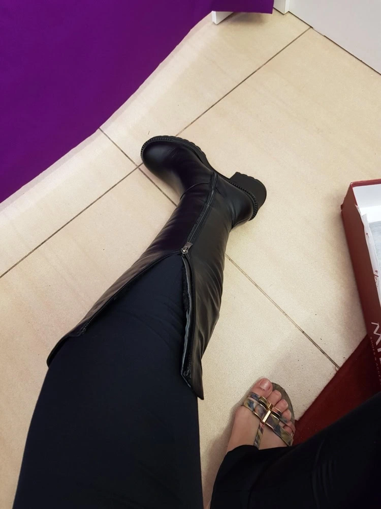 Сапоги идут в размер четко в соответствии с описанием, но я не поверила и решила что влезу в 38 с моими 25,4 см ступней. Влезла но чуть свободы больше надо ноге и значит все таки 39.На ноге смотрятся хорошо, кожа мягкая. Обхват голени у меня 36, подошли..комфортно... мой рост 170 см, длина под колено. Чуть сверху топорщатся, но не критично. Никакого меха там нет как писали в отзывах. Демисезонные..