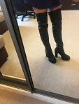 Сапоги классные. Пришли хорошо упакованные,с мешочками для хранения. Заказала такие в коже и замше. Остановилась на замше: в коже для меня были жестковаты,на сгибах образовывались неудобные заломы. Идут в размер на худенькую ножку.