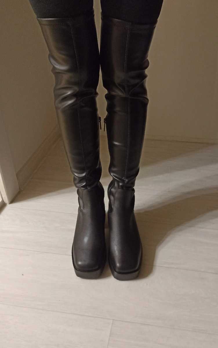 будьте внимательны, данные сапоги на узкую ногу и прилегают сильно, носить только с юбками и платьями. снимать их тоже нужно немного времени потратить.