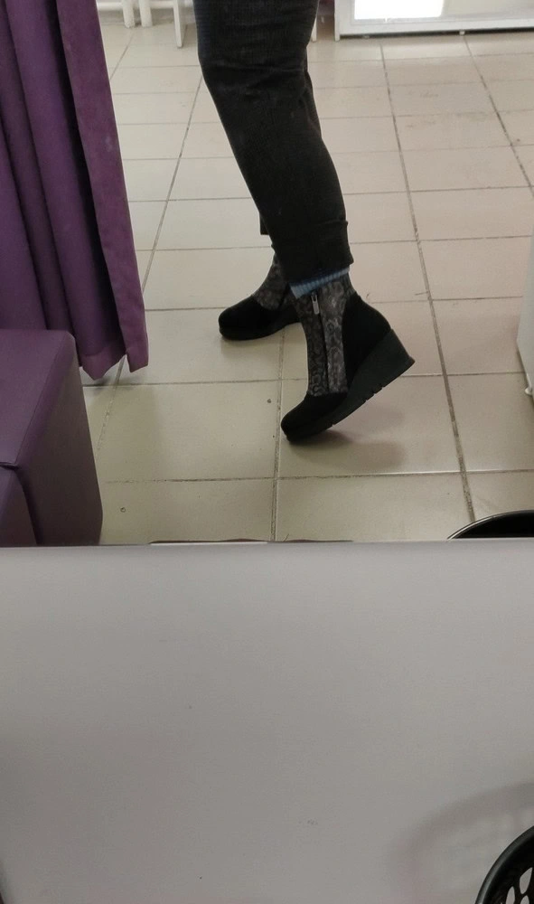 Сапоги мне очень понравились! По ширине стопы 23 и по голени 29 сел хорошо 38 размер! Ношу 37! Маломерят ! Ну это мои ощущения! Мех довольно толстенький, замша и кожаная вставка мягкие и красивые! Мне показалось, что из за двух замков , которые оба действующие, у меня не хватило подъёма и возле замков кожа собиралась! Хотя со стороны не заметно ! Каблук просто мега удобный и из за высокой подошвы невысокий ! Ногам было очень комфортно! Рекомендую!