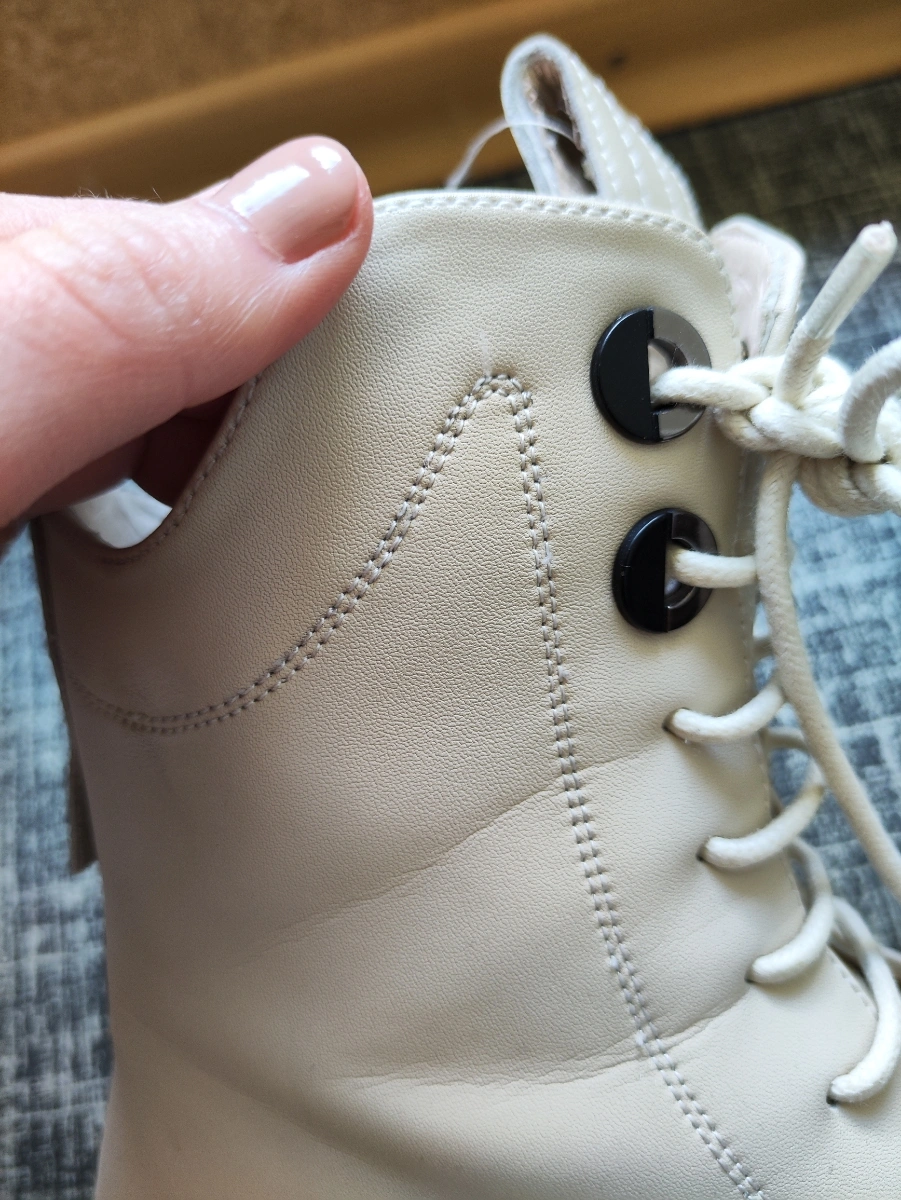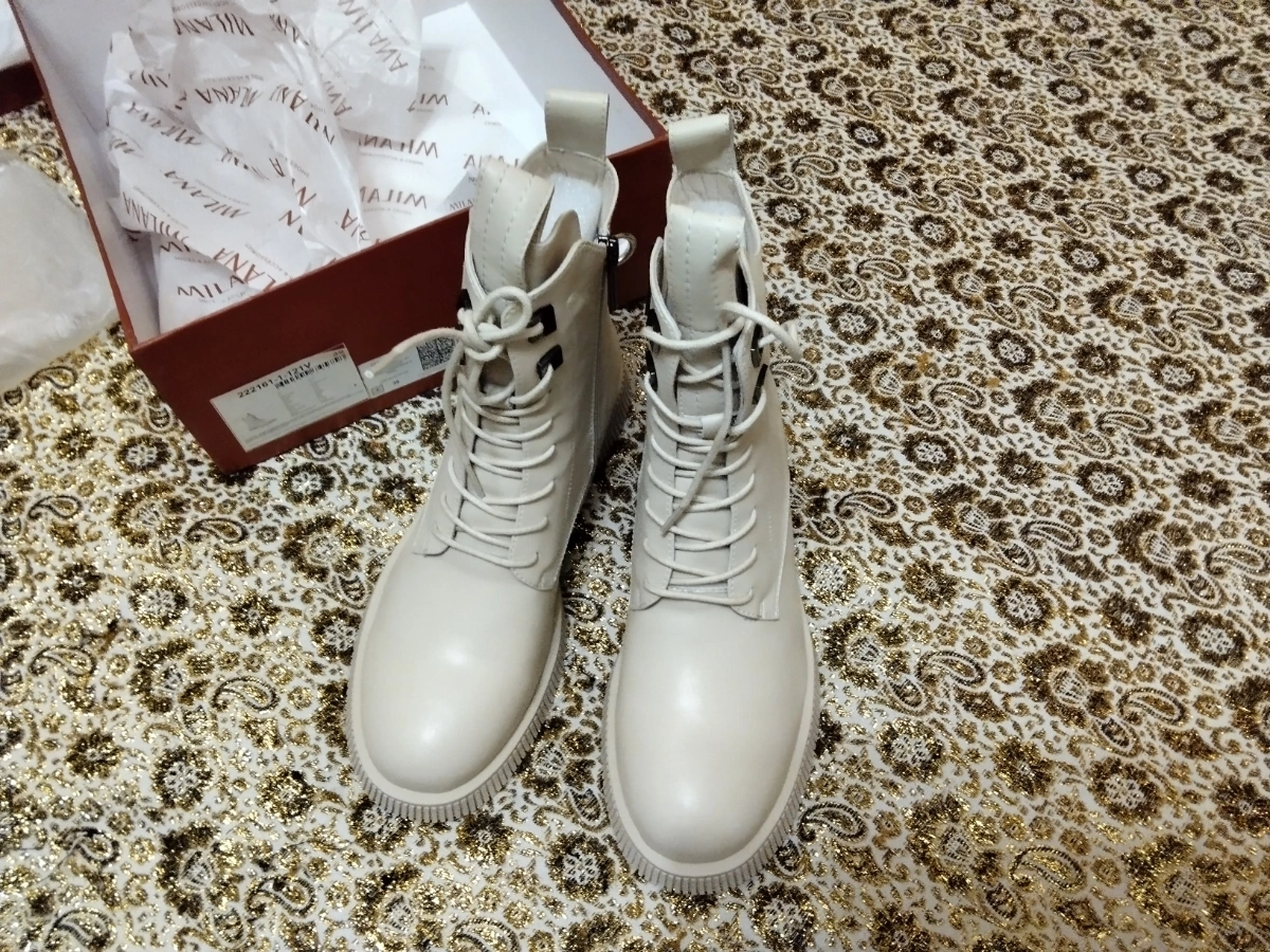 Сняла один балл за упаковку. Я не знаю, чья это ответственность, но мне пришла коробка с половиной крышки, как будто за нее дрались собаки. Сами ботинки было упакованы нормально, все, что нужно есть - два мешочка с логотипом, пенопласт для поддержания формы, пакетик с влагопоглотителем.
