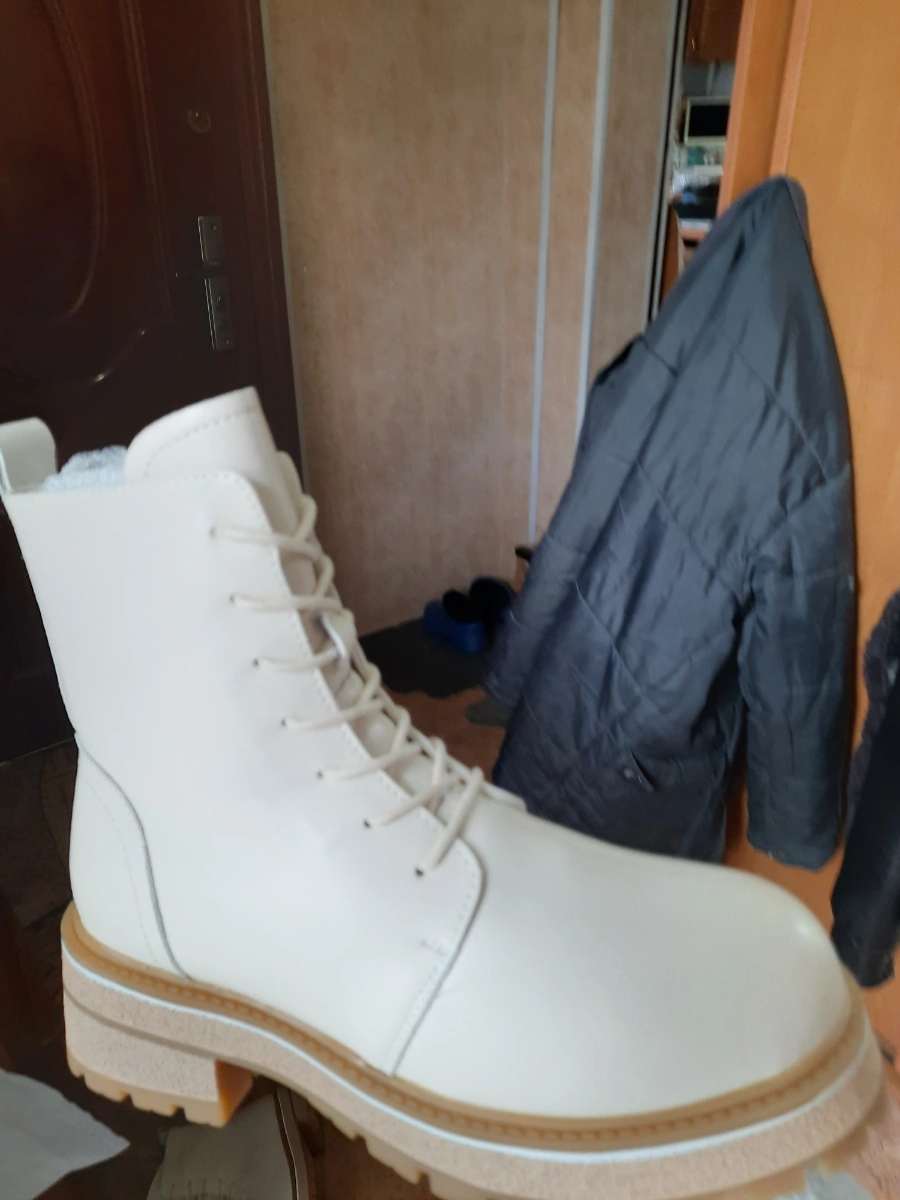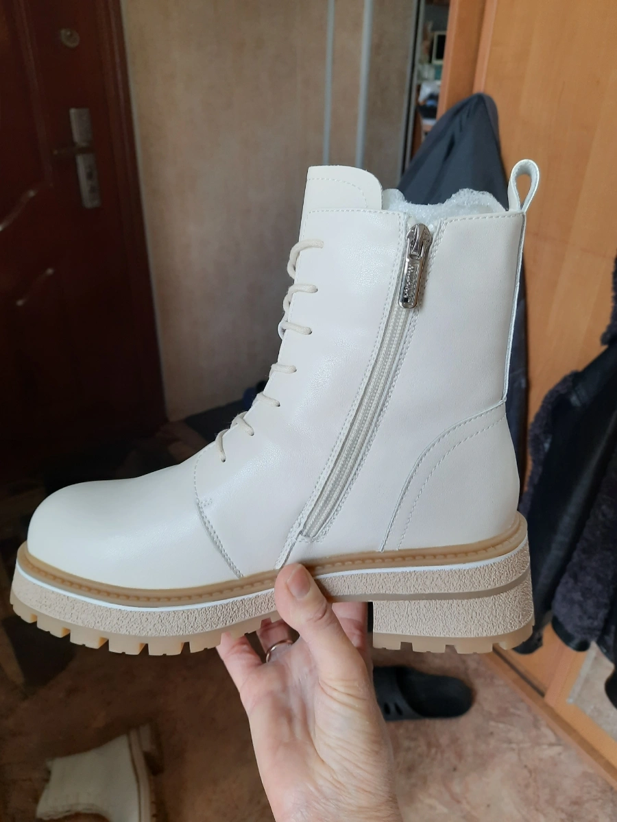 -Главное-не узкие и подошва рифлëная прорезиненная,что для зимней обуви немаловажно. Благодаря наличию и шнурков, и замка нога хорошо фиксирована в ботинке, тем самым, создавая удобство при ходьбе.