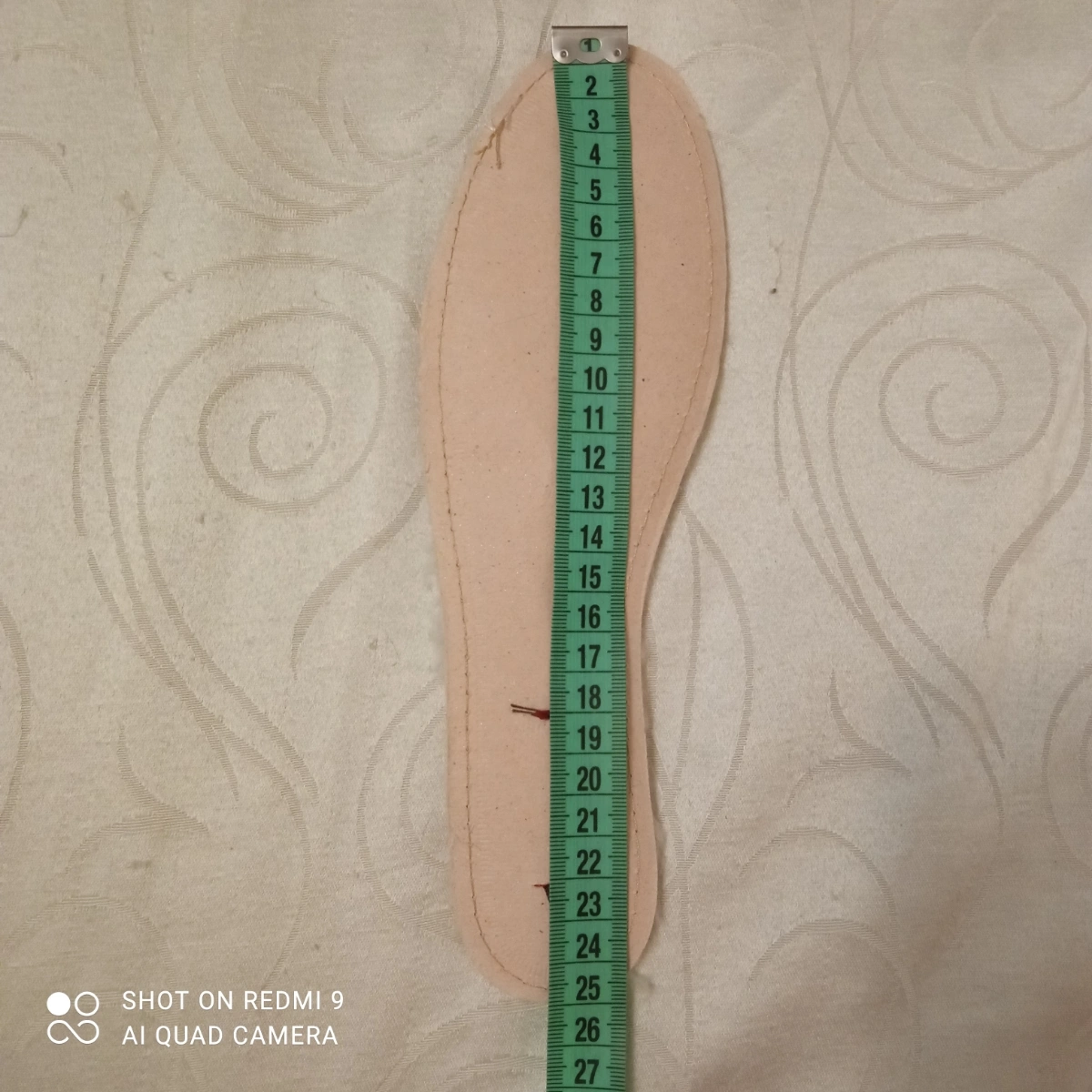 Чтобы измерить длину ступни, необходимо встать на ровную поверхность, слегка касаясь пяткой находящейся сзади перпендикулярной ровной поверхности, например, стены без плинтуса.