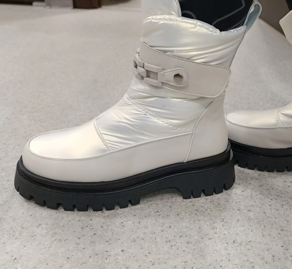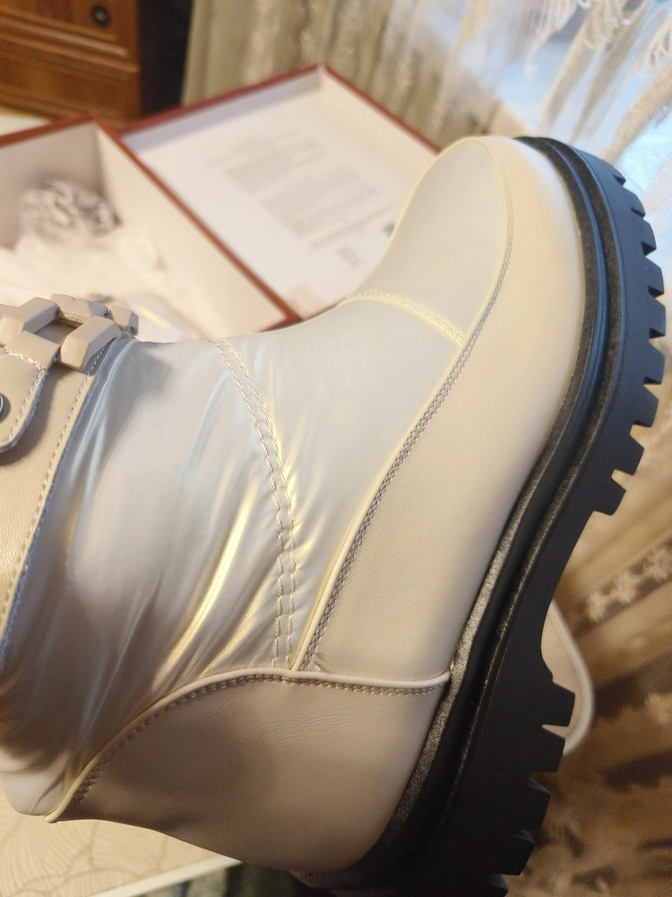 Достоинства: Очень красивые и стильные сапожки! Полностью соответствуют фото, но мне оказались велики по полноте ноги.