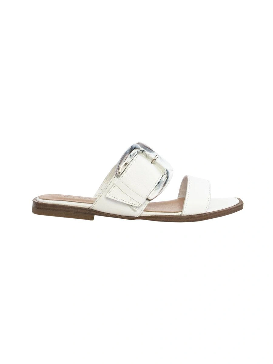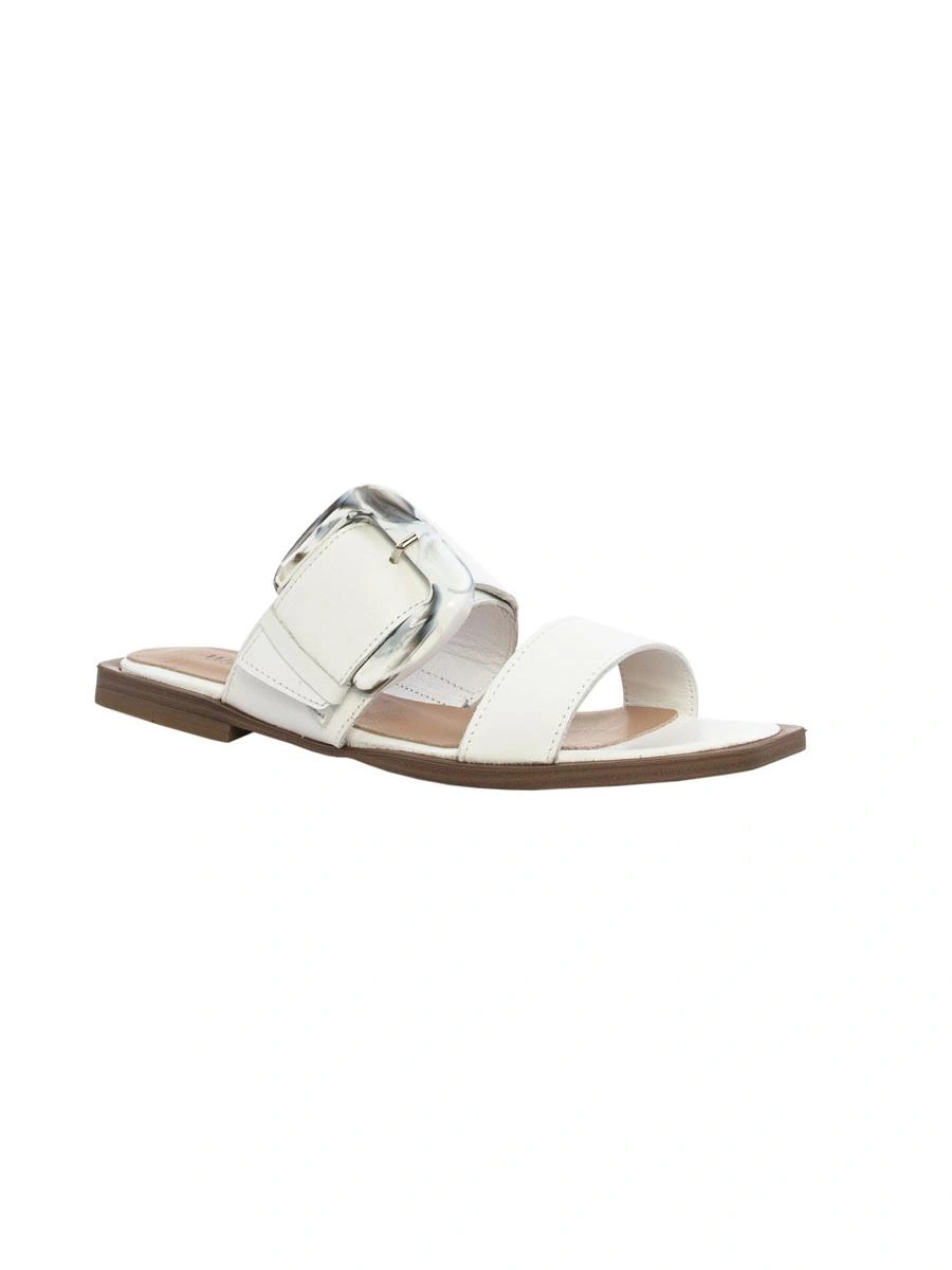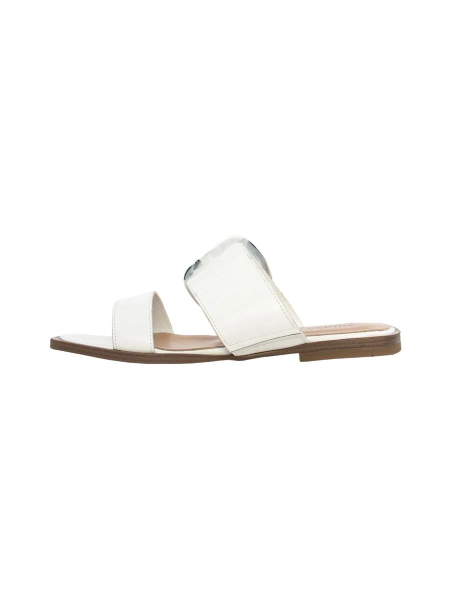 Но эта пара сделана топорно. Клей на пряжке, мелкие царапины на коже, неаккуратная мысочная часть на правом сабо (неровный край и торчащий клей).