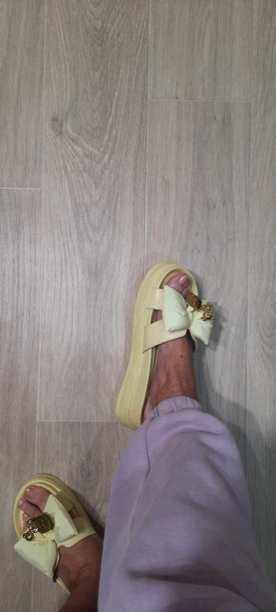 Шлепанцы очень удобные, красивый. Длина стопы 24 см. Подошли шлепанцы 38 размера. Очень довольна. Рекомендую