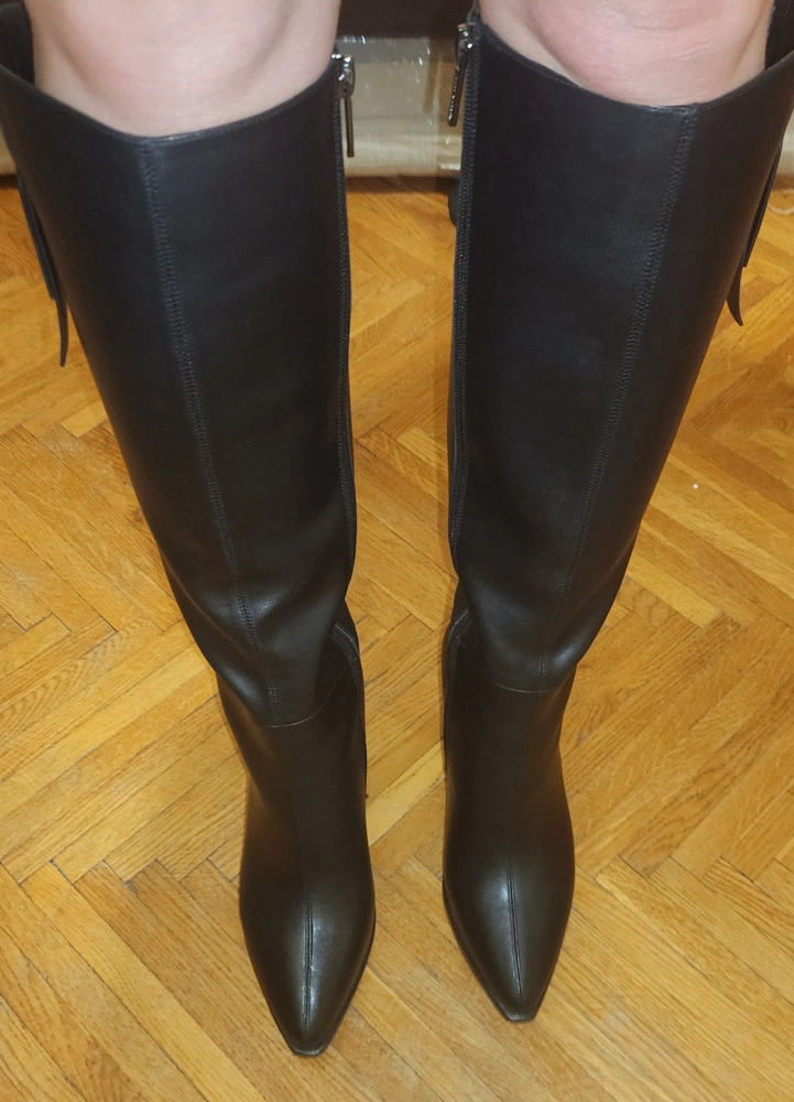 Сапоги просто не реальные! Колодка удобная, каблук не ощущается высоким. Идеально выполненная работа. Чуток узковато голенище, но там есть резиночки, думаю не много еще растянутся, да и скинуть пару кг не мешало бы))). Однозначно такую красоту оставила.