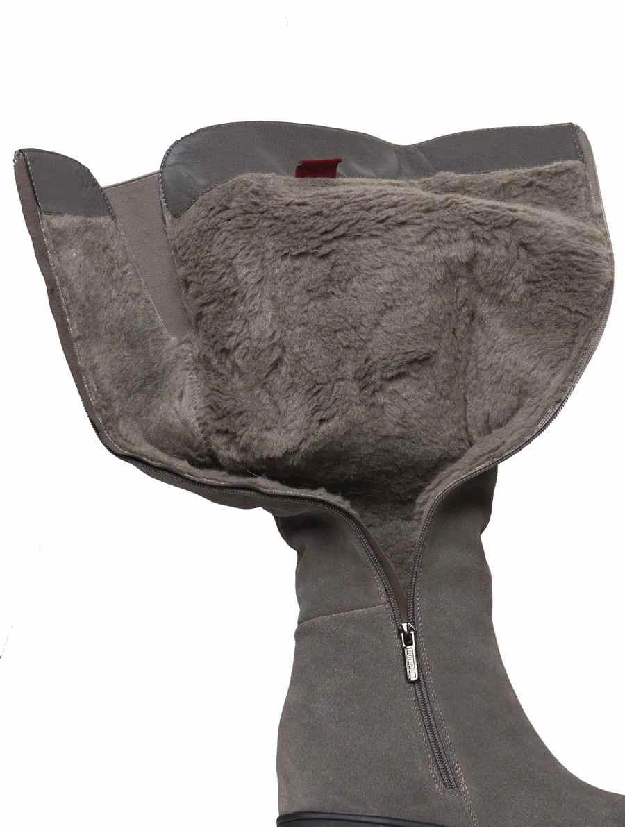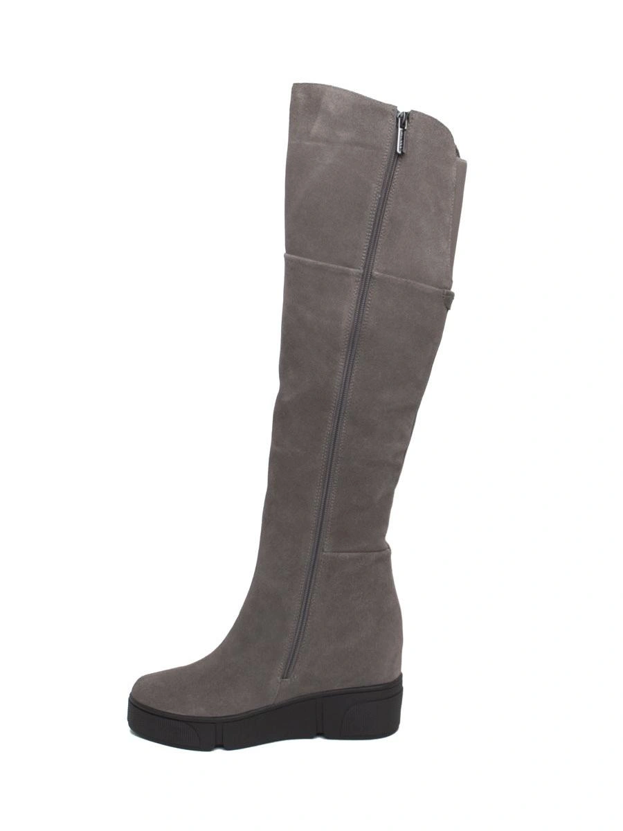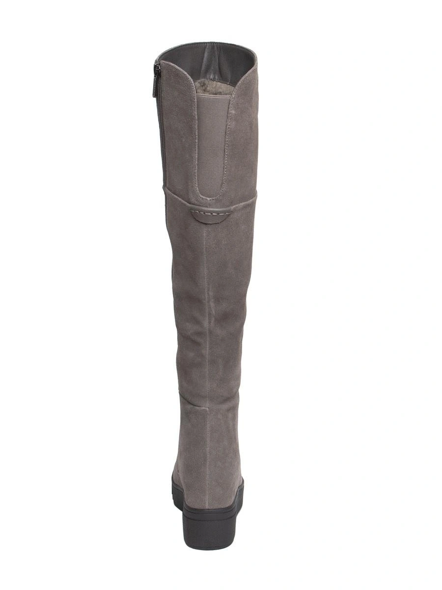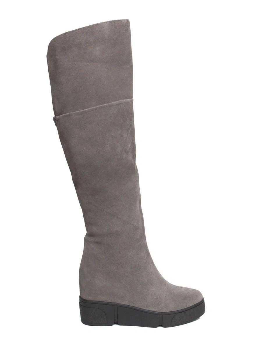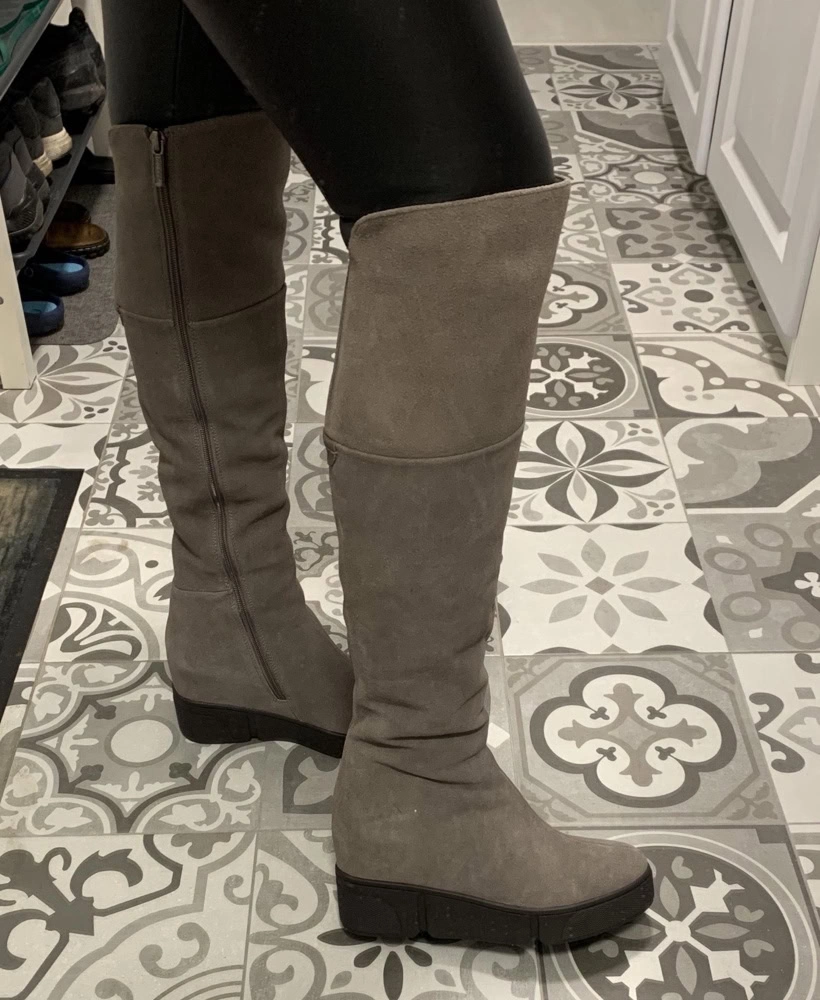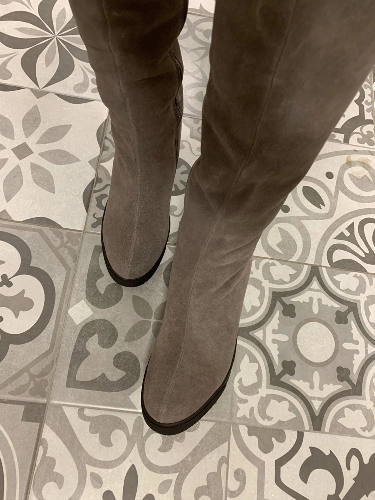 Сапоги хорошие.Размеру соответствуют! Ношу 37 размер, у этих 37го размера даже осталось немного места. На тонкой щиколотке даже в гормошку получилось, свободно. Но в верхней части один сапог шире другого минимум на 1 см, из-за чего отходит от ноги и топорщится. Поэтому и не взяла(( А так очень понравились. Платформа удобная, практически не чувствуется. Я обожаю на замше шов сверху, тк с ним замша со временем НЕ расползается и сапог держит форму, всегда выглядит аккуратно. Внутри толстый слой шерсти. Спилок практически как целиковая замша на ощупь. Цвет ближе к серому.