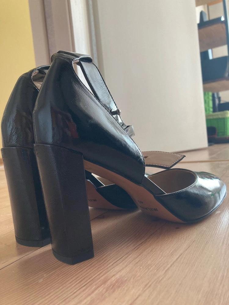 Туфли обалденные, очень элегантно смотрятся , особенно у кого худая лодыжка. Если ноги отекают к вечеру рекомендую взять 40, я взяла на свой 39 - 39, идут размер в размер. Но после родов к концу сидячего рабочего дня думаю модно было взять 40. Если верить таблице разница 5 мм. Кожа не воняет. Точно не на широкую ногу .