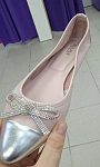 Балетки очень красивые. праздничный вариант. Качество отличное. мягкие. удобные на мой 39-40 и узкую ступню. заказанный размер сел как влитой. не слетают. Цвет нежно-розовый.