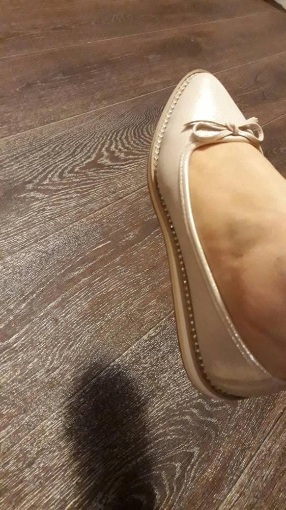 Туфли красивые,сверху смотрятся как будто из золотистой ткани. Брала 2 размера 39 и 40. 39 размер узковат,а 40-ой слишком большой.Оставила 39, думаю со временем разносятся. На широкую ногу не подойдут. Брала с большой скидкой,думаю что для них сильно цена завышена!