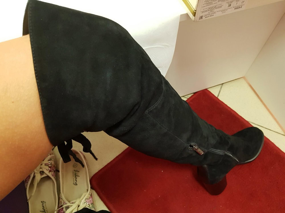 Сапоги очень понравились по качеству и колодка очень удобная, НО, я смогла засунуть в прорезь молнии ногу только до икры, верхняя часть ботфорта не полезла выше вверх никак, даже после расшнуровки, то есть верх оказался на уровне колена, дальше слишком узко. Икры у меня абсолютно нормальные, однозначно, но здесь, видимо на совсем стройные икры. Очень жаль, качество хорошее.
