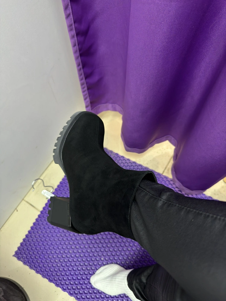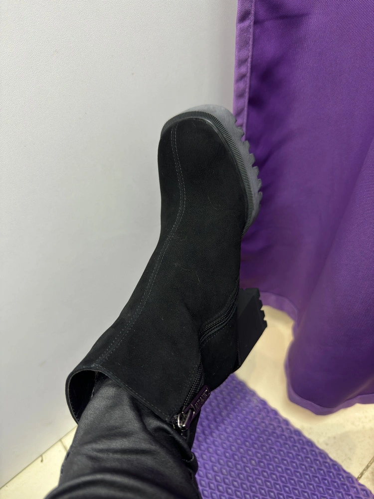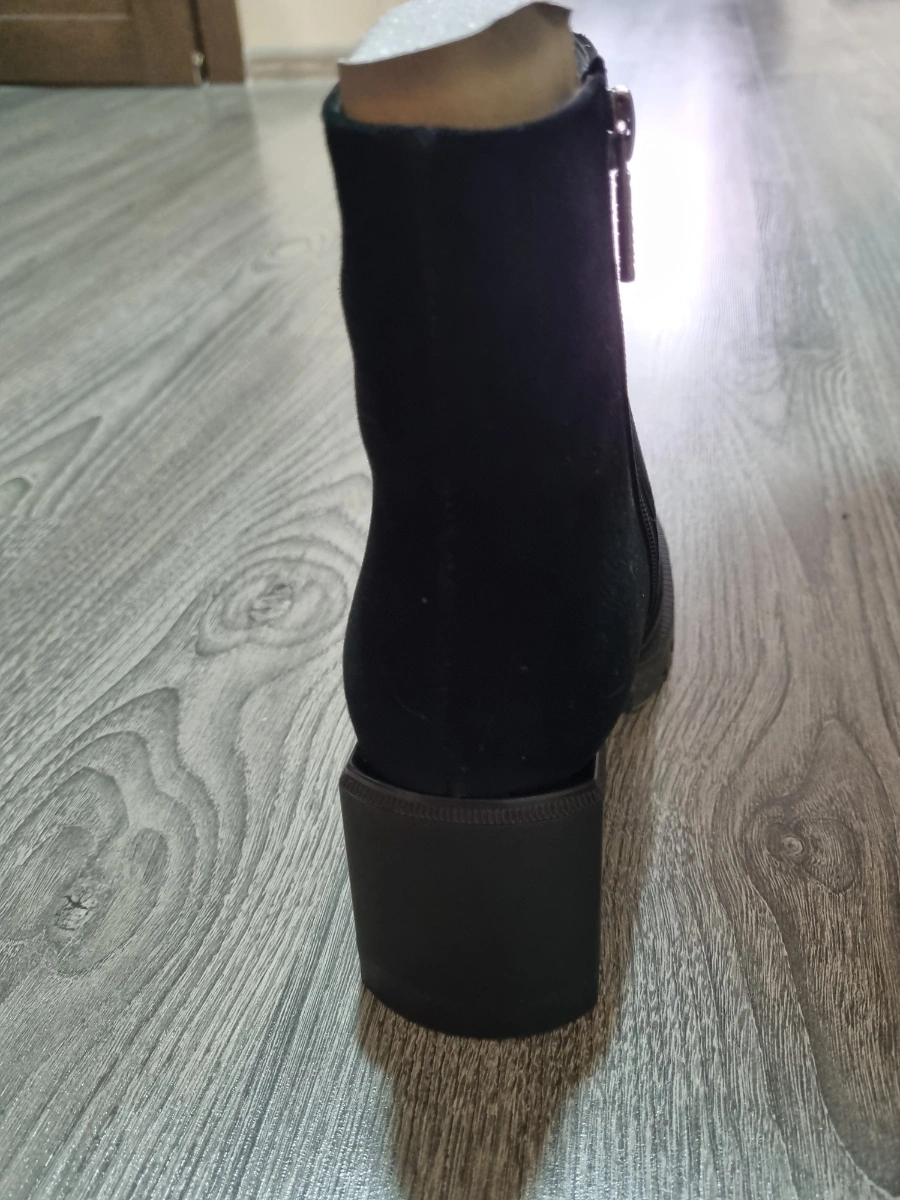 Ботинки пришли быстро, хорошо упакованы. Колодка удобная, нигде не давят. Первое впечатление хорошее, замша мягкая, без потертостей, мех плотный, но оставляет следы на носках, думаю, что примнется!