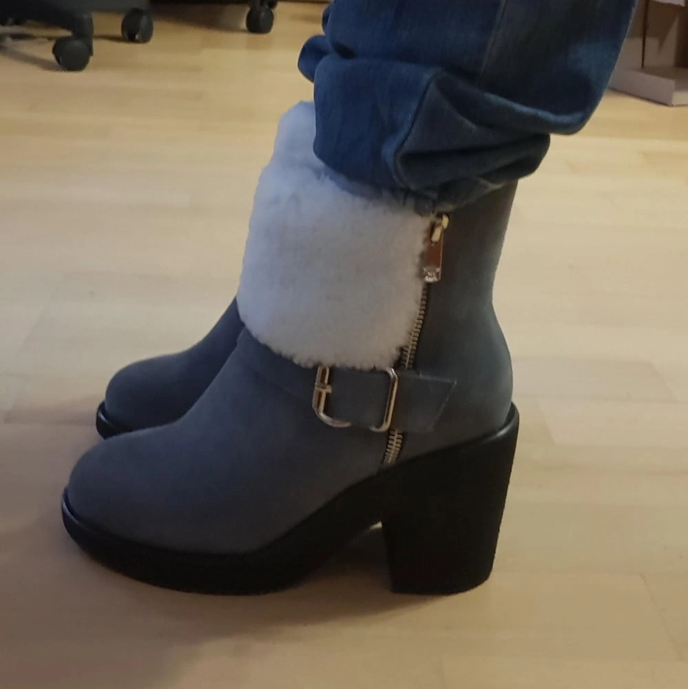Ботинки сказочно удобные. На столько,что снимать не хотелось. Замша натуральная,мех густой. Каблук не ощущается. На ноге красиво смотрятся. Размер подошел идеально. Рекомендую