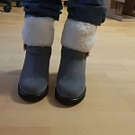 Ботинки отличные, цвет как на фото, замша (не велюр!) хорошего качества, мех густой, идут в размер, но мне показались тяжелыми из-за подошвы, хотя колодка удобная.