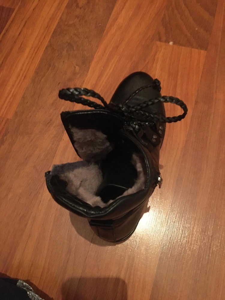 Выкупила сегодня 25.09.19., стараюсь писать после носки-эксплуатации, но до морозов далеко. На ноге красиво, шнурки подтянула и совсем по другому смотрятся, намного лучше. Можно и с платьем и с джинсами, универсальные. Мне нравится сейчас возможно носить платье с берцами. Кожа неплохая, идут размер в размер( поясняю- обычно зимняя обувь чуть-чуть свободнее, а эти ботинки одела как в туфли меховые, тонкий носок когда мех примнётся). Мех хороший, не тонкий, но мне нужны были ботинки на небольшой минус, подошва у них один сантиметр, в Сибири на начало сезона. Пишу своё субъективное мнение, так как молодежь ходит в таких в минус сорок. Пока очень довольна покупкой, жаль только летом скидка была больше. Спасибо Милане и WB!