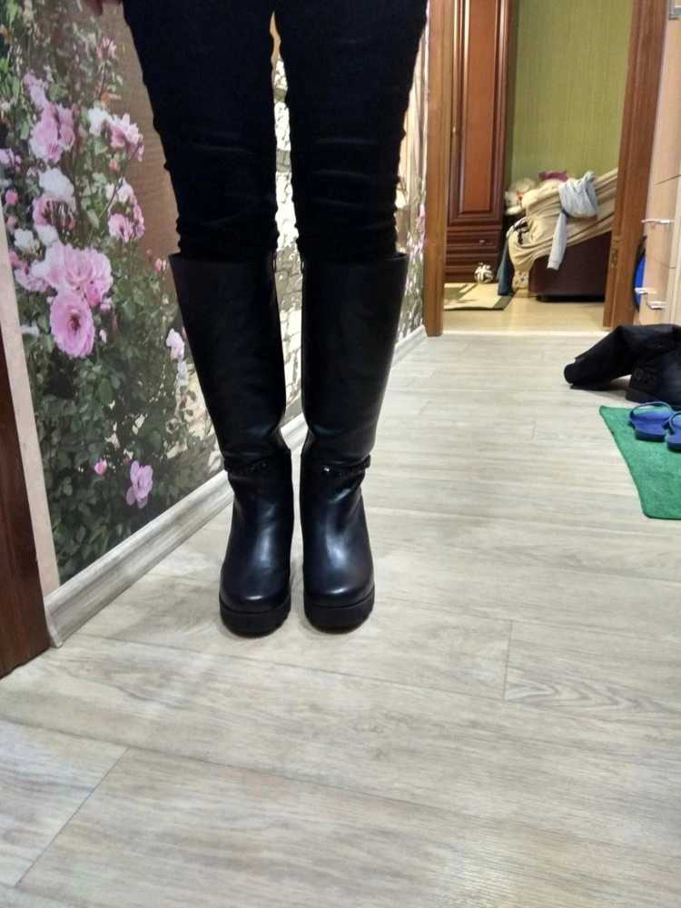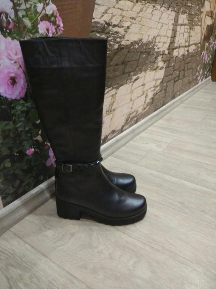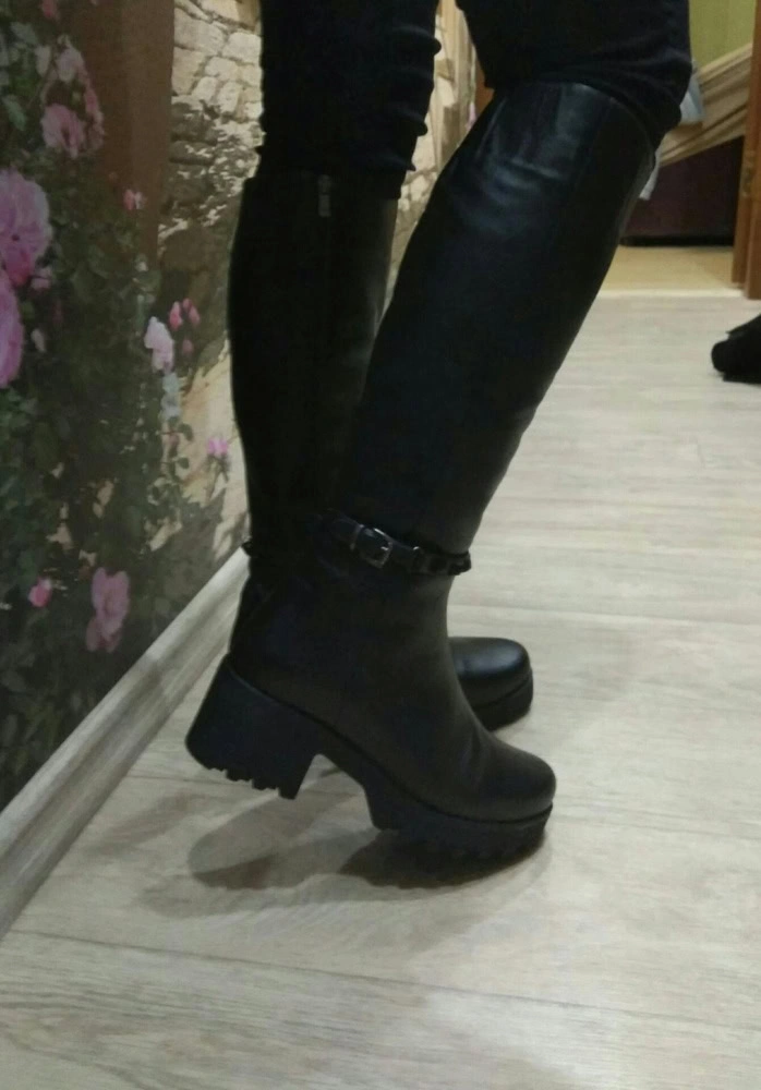 Сапоги для слякотной санкт-петербургской погоды, когда не знаешь, как пройти по лужам и мокрому снегу - находка. Подошва толстая, каблук устойчивый, широкий. Покупкой очень довольна, так как купить на тонкие ноги сапоги, большая проблема. Размерной сетке соответствуют. Брала на примерку два размера: 37 и 38. Ношу полноценный 37, сапоги подошли по всем параметрам именно 37. В 38-ом "утонула", и голенище на пару сантиметров шире желаемого.