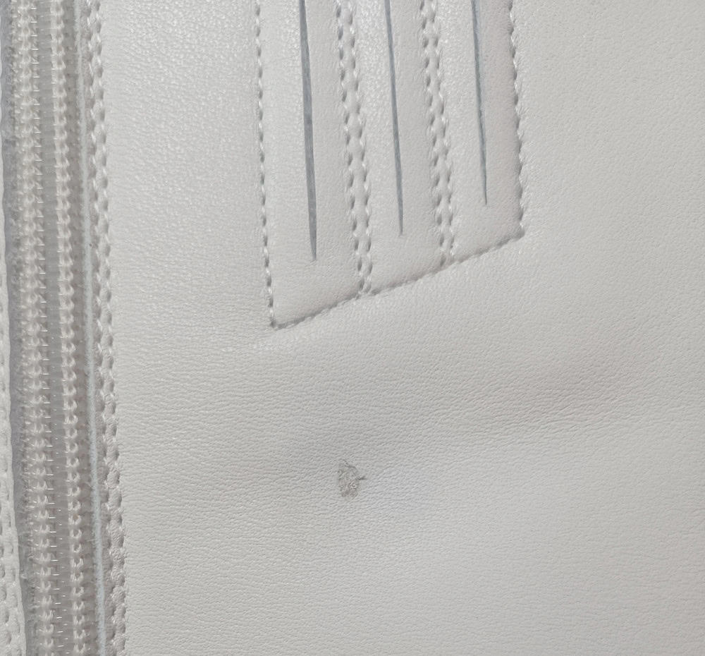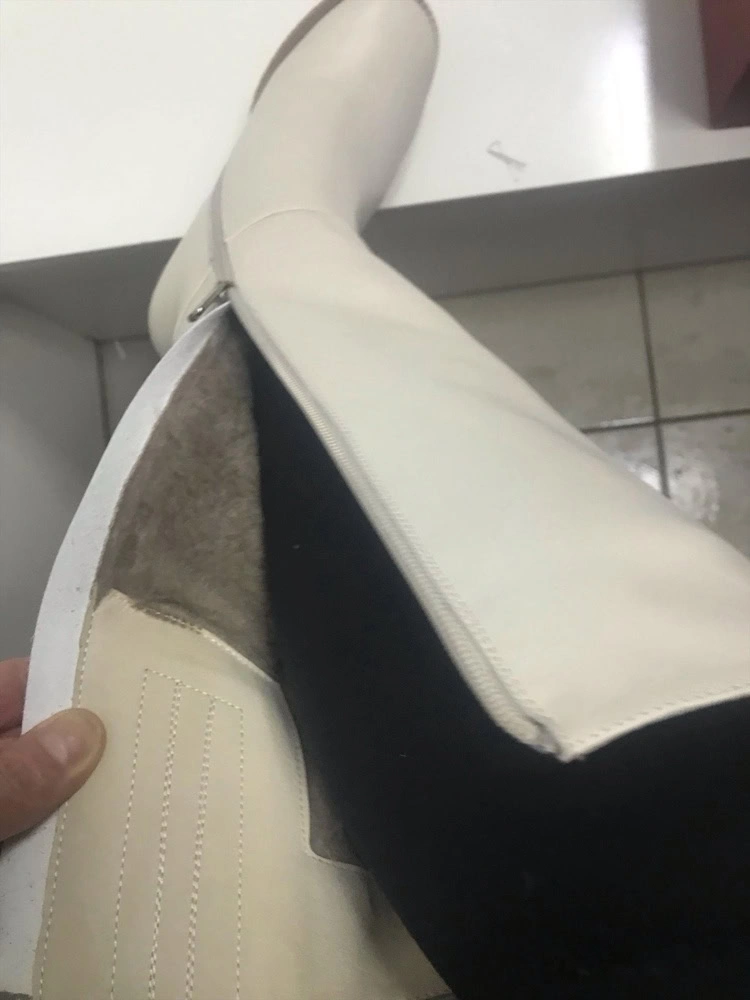 И вторая причина отказа это брак. В 37 размере сапоги были одни, я их заказала, но они с браком. В верхней части голенища дырка, как будто чем-то кожа прожжена. Обратилась к менеджеру, она должна была оформить брак.
