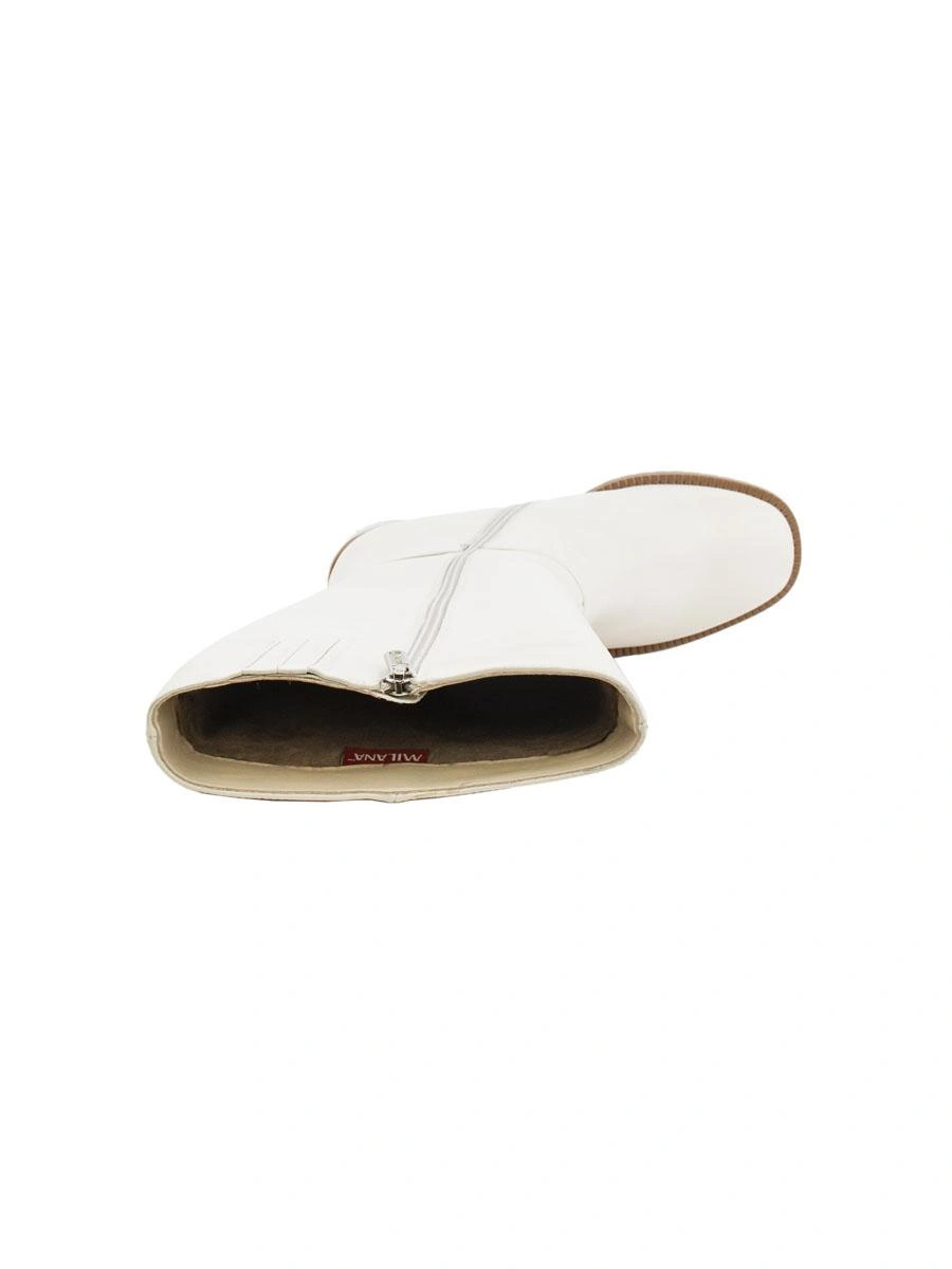 Сапоги женские из натуральной кожи демисезонные от компании Milana. По-другому называют полусапожки, высокие сапоги трубы. Высота сапожек позволяет вашим ножкам находиться в тепле, так как внутренняя часть подкладки выполнена из евро шерсти. Обувь изготовлен из мягкой кожи, что обеспечивает прочность и долговечность изделия. Высокие сапоги трубы отлично подходят для женщин, девушек подростков и будущих мам. Отлично подойдут на любой сезон: весну, осень и теплую зиму. Ботфорты представлены в белом цвете, подойдет под любой образ и стиль одежды. Зимние женские сапоги имеют высокую посадку, которая защищает ноги от холода и обеспечивает идеальную поддержку. Это идеальные женские сапоги на низком каблуке для всех модных трендов года! Классический стиль сапог отлично сочетается с любой одеждой, будь то юбки платья, также можно одевать с легинсами, джинсами, узкими брюками и прекрасно гармонирует с курткой, пальто и шубой любой длины. Сочетание комфорта и стиля на зимние и осенние дни. Модель предназначена для повседневных прогулок, в школу и университет, на работу, на вечеринку, в офис, для автоледи, для девушек среднего и высокого роста. Также отлично подойдут для вождения автомобиля. Широкое голенище подойдет на полные икры и подчеркнет красоту и стройность ваших ног, а также придаст уверенности в любой ситуации. Сапоги выполнены из высококачественных материалов, они утеплены, непромокаемы и элегантны. Стильный и минималистичный дизайн отлично подчеркивает белый цвет, а средняя толщина подошвы с устойчивым низким каблуком и протектором предотвращает скольжение на скользких поверхностях. Кожаные сапожки на широкой платформе с длинным голенищем, которые подойдут для полной, для узкой стопы и будут удобны для ходьбы по льду и грунту. Дизайн разработан в Италии.