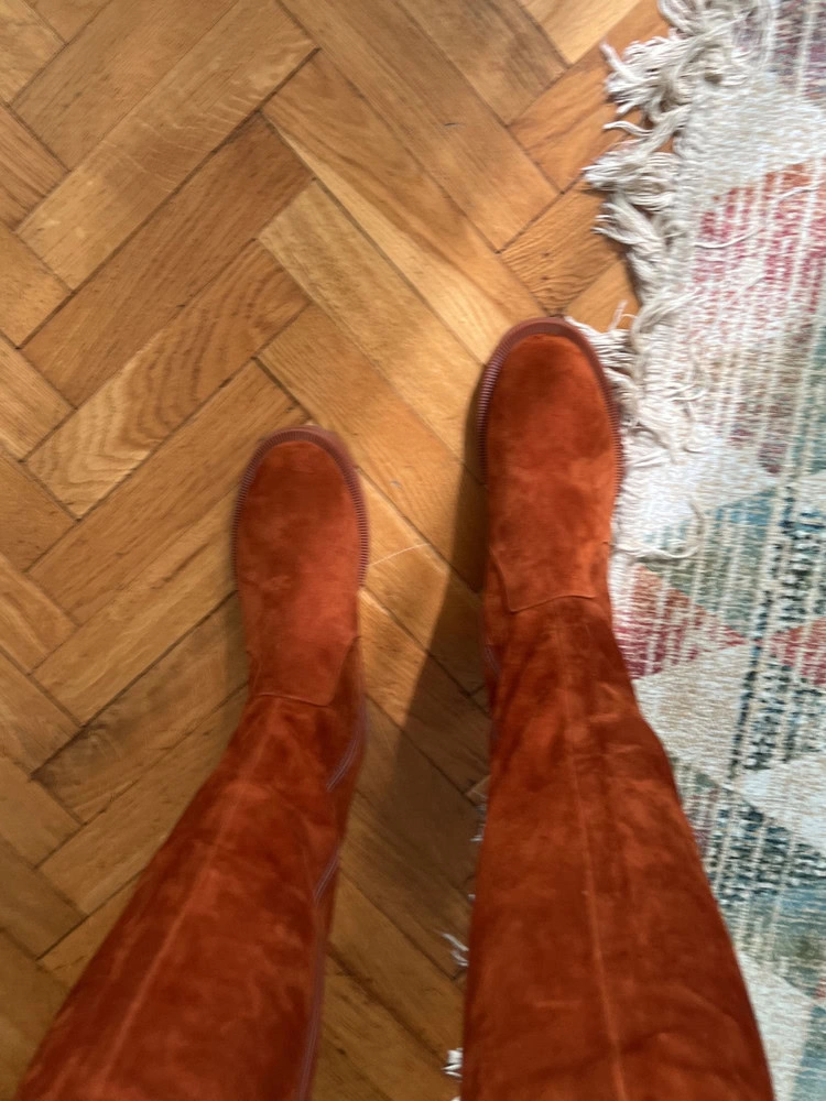 Сапоги шикарные. Присмотрела их ещё в 2023 году, согласно размерной сетке брала 37 размер, но оказались велики, а 36 размера не было, не успевала. И о чудо, свершилось, забрала последние и по волшебной цене. Сами сапоги отличного качества, и подошли идеально.