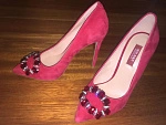 Хорошие туфли. Красного цвета, брошь красивая, смотрится отлично, сделана качественно как и сами туфли. Размер соответствует полностью, на узкую ножку 35 размера сели хорошо. Каблук высокий , ходить может и не очень удобно, но эти туфли на шпильке и не предусмотрены для постоянной носки.