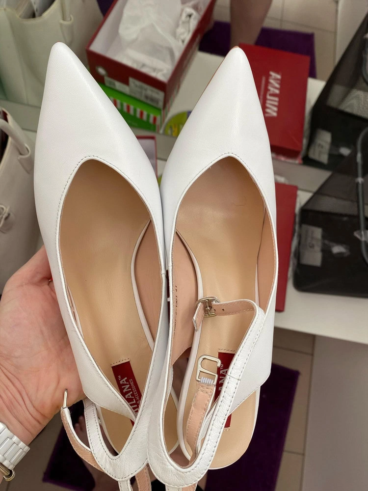 Туфли красивые, очень нежно смотрятся на ноге, но и как предыдущий комментарий, маломерки, заказала 41 на свой 40, подошли. Каблук невысокий, устойчивый. В живую, смотрятся на ноге лучше, особенно острый носик)