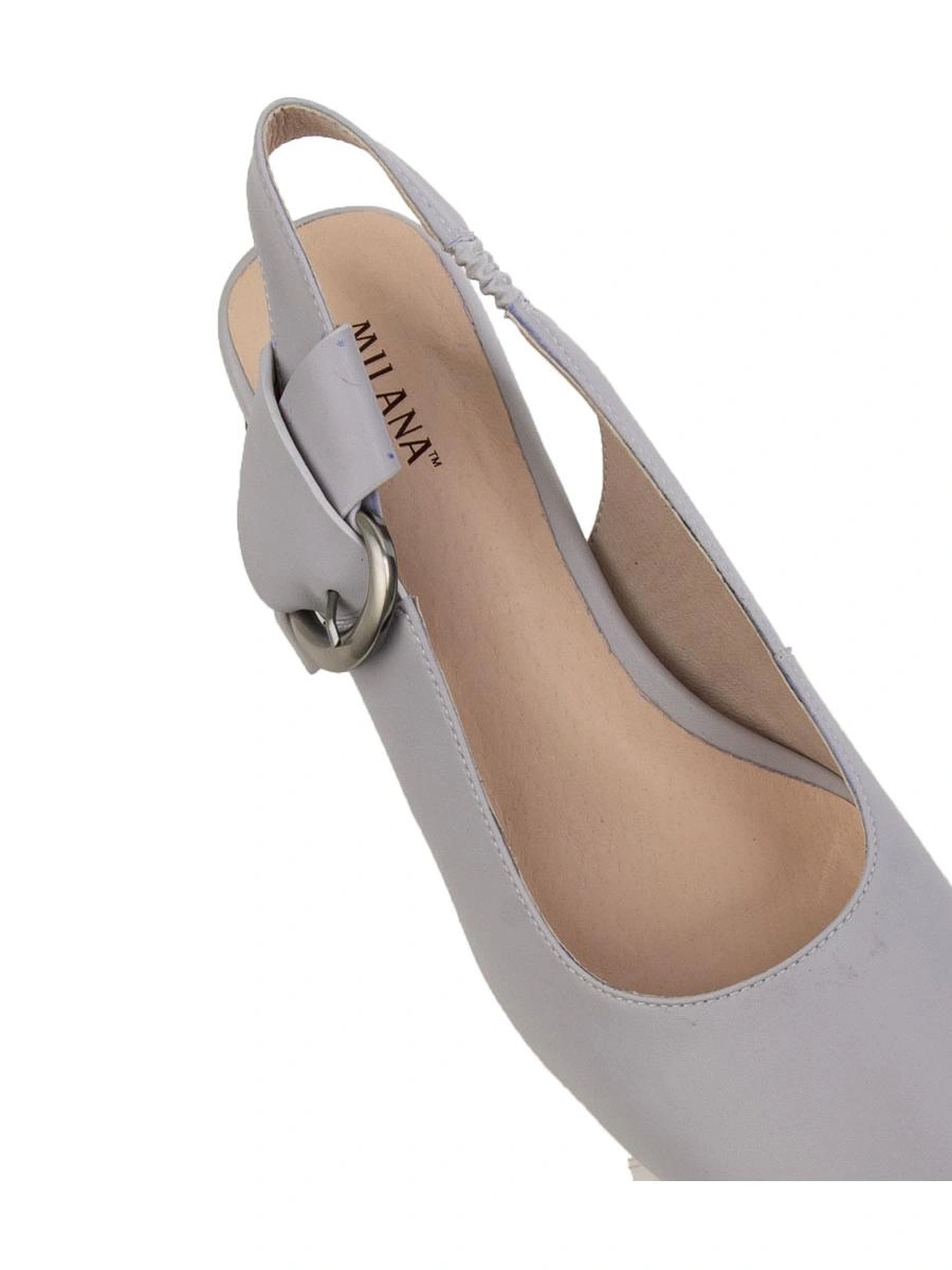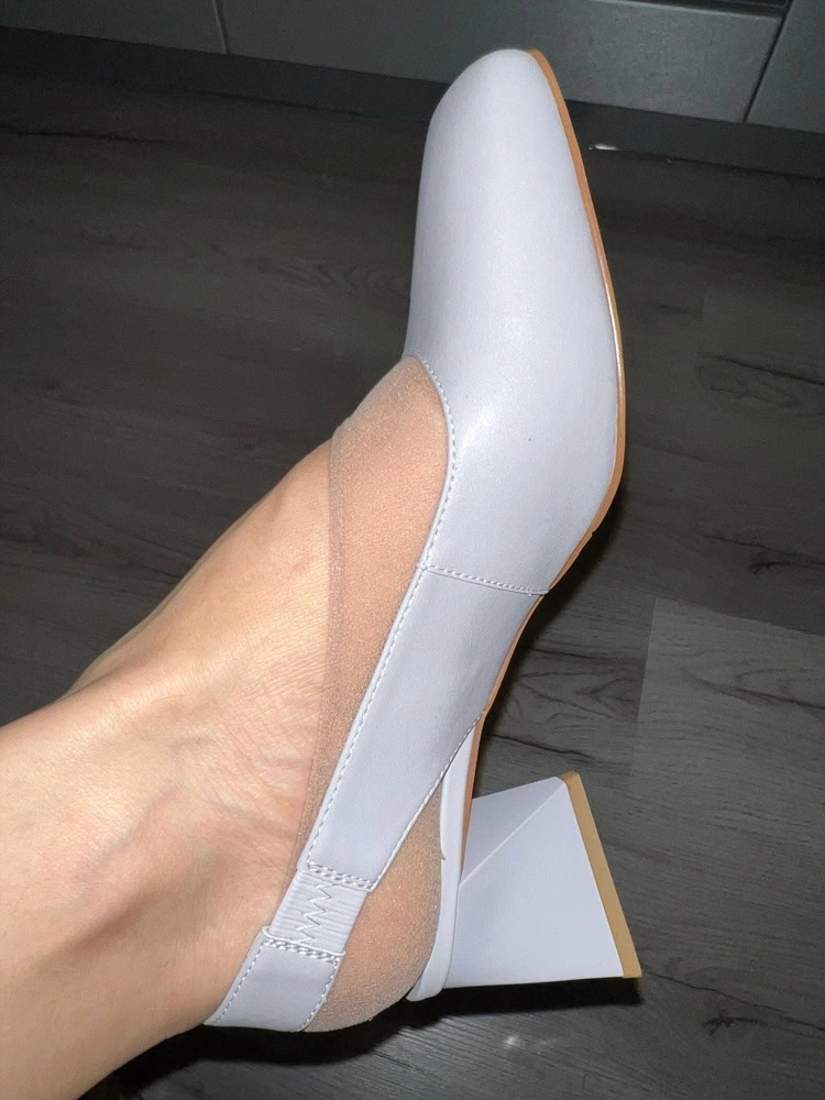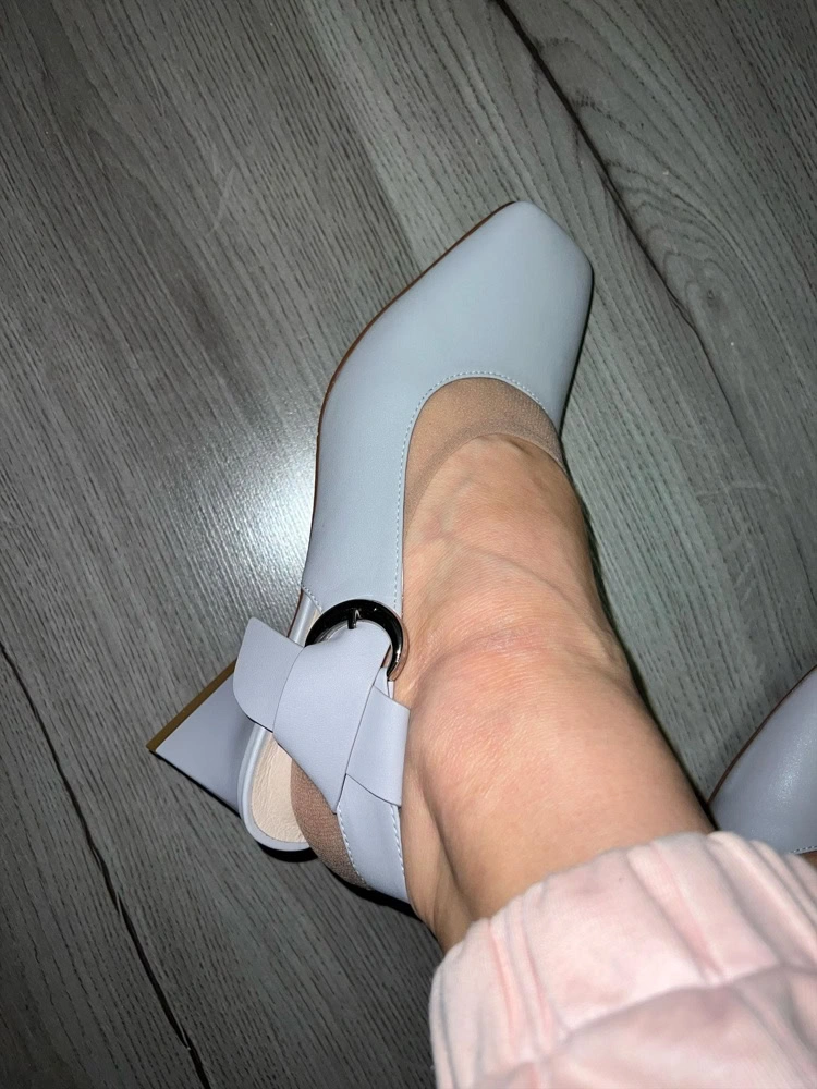 Я люблю Милану, обычно не подводит качество. Эти туфли не совсем серые. Они уходят в сиреневый/лиловый оттенок. Это конечно стало для меня сюрпризом. Необычные, изюминку придаёт каблук, надо видеть в жизни. У меня очень широкая нога, но кожа мягкая. Взяла бы наверно лучше 40, на свой 39, но его нет. Ремешок немного «утяжеляет» вид ноги.