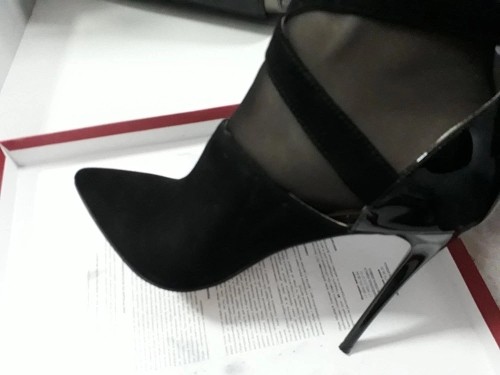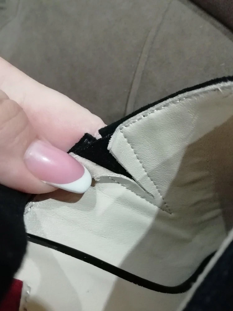 Туфли просто шикарные! Колодка очень удобная-высота каблука не замечается совершенно! Мне повезло-туфли пришли прямо с фабрики(коробка полностью в заводской плёнке,все замки,набойки-все обклеено защитной бумагой). Девушка ниже возмущалась,что кто-то разрезал резинки при примерке..у меня туфли абсолютно новые и другого размера(одни и те же достаться нам не могли) и тоже есть надрез. Видимо это заводской. Смущает немного,что внутри отделка бежевого цвета,чёрная была бы удачнее,но производитель пишет,что чёрная красила ноги и ее заменили на беж. Ничего страшного) Вообщем я очень довольна!
