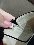 Туфли ,огонь! только когда надела, были туго хотела даже здать, но потом обнаружила сбоку треугольный шов, в нем между внутренним материалом и внешним есть резинка, сделать нужно надрез внутренней и внешней ткани, не разрезав резинку и вуаля, стало удобно! У меня 36, размер соответствует.